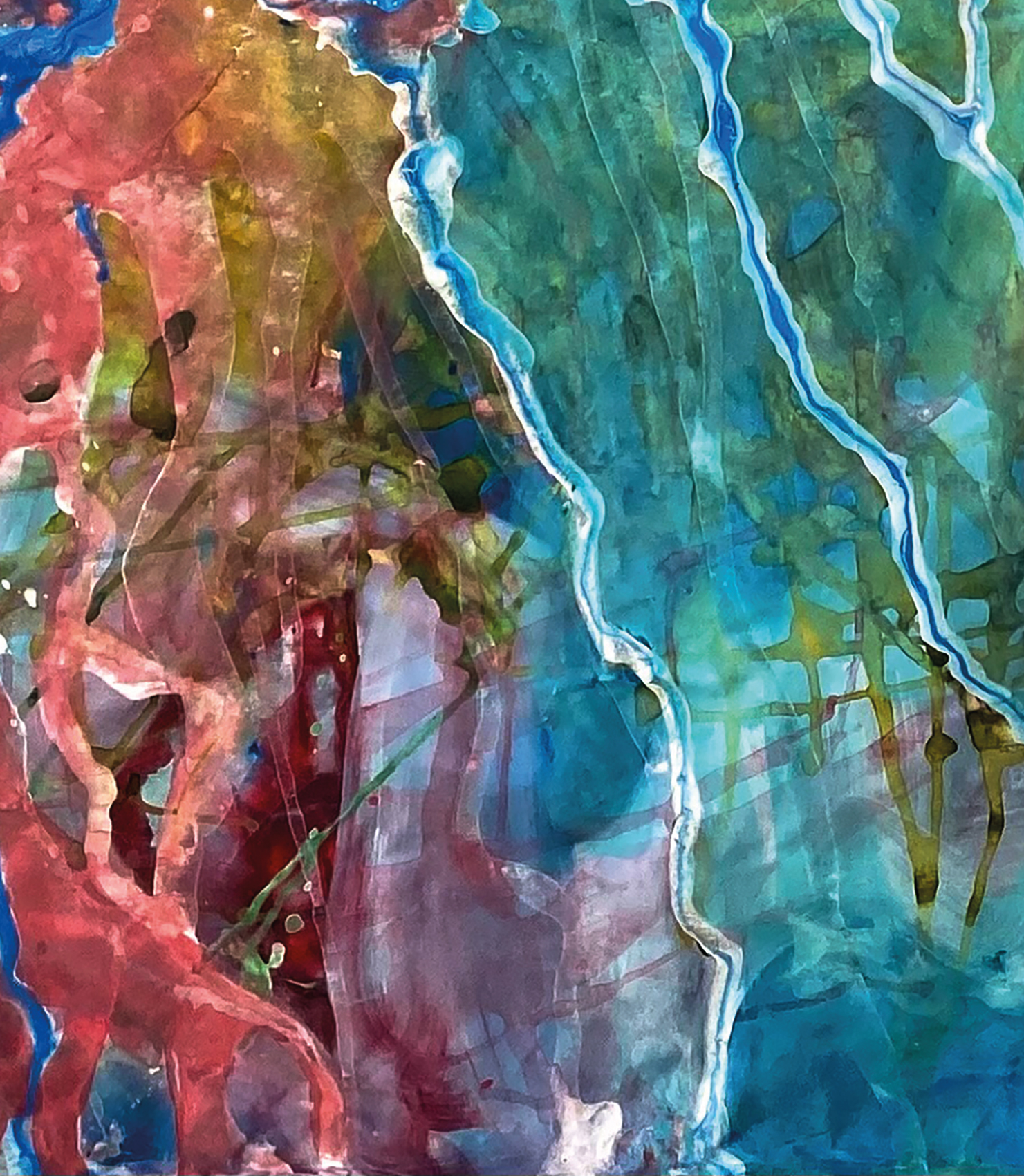 Essa obra se apresenta como um campo de cores em movimento contínuo, onde as cores se encontram e se transformam sem limites rígidos e parecem irradiar energia para todos os lados.