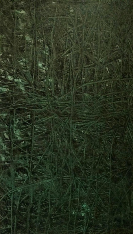 dois fios condutores principais, que se reconhecem. Um caminho se dá pela construção de obras abstratas que evocam a natureza, e o outro por obras figurativas que têm em comum a devoção ao teatro. Afinal, essa ciência tem suma importância em sua vida. Os suportes dos trabalhos variam entre pintura, escultura e instalação. Ao se mudar para a Ilha de São Miguel, a artista pôde desfrutar de novas paisagens e novos recortes naturais, o que a impulsionou a utilizar a memória como ferramenta para recriar esses cenários de maneira singular. Ela refaz vistas a partir da sobreposição e retirada de camadas de tinta.