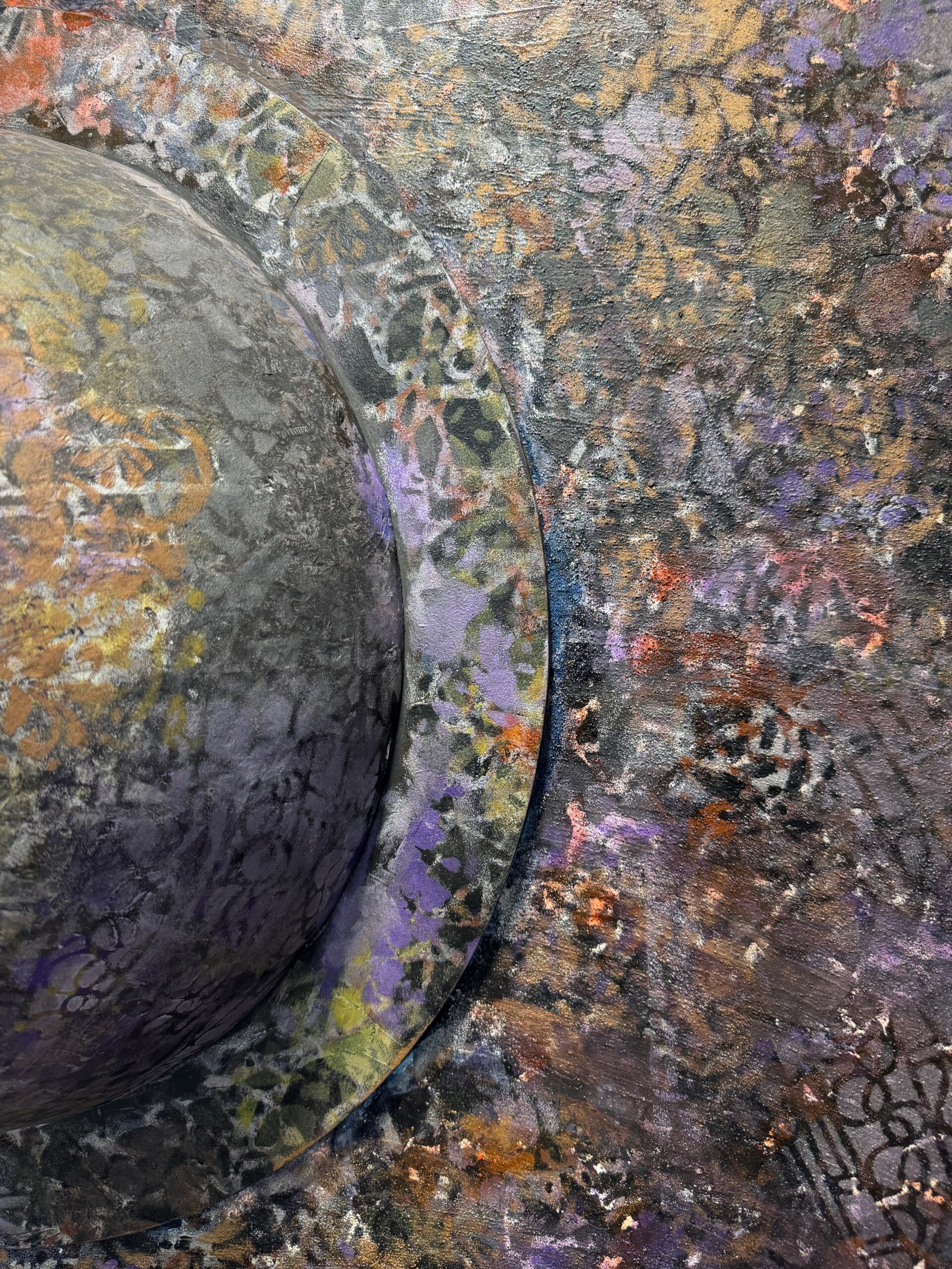 “Energia concentrada em um núcleo opaco, onde a forma emerge como acúmulo e retenção.”